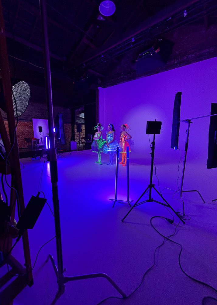 En Plató La Mina ofrecemos alquiler de plató en Madrid totalmente equipado para producciones fotográficas, rodajes publicitarios, videoclips, entrevistas y contenidos digitales. Nuestro espacio cuenta con fondo blanco, fondo negro y croma profesional, adaptándose a todo tipo de proyectos audiovisuales.
